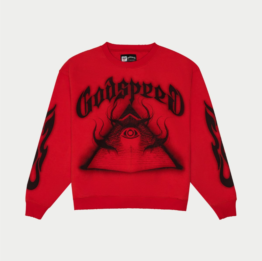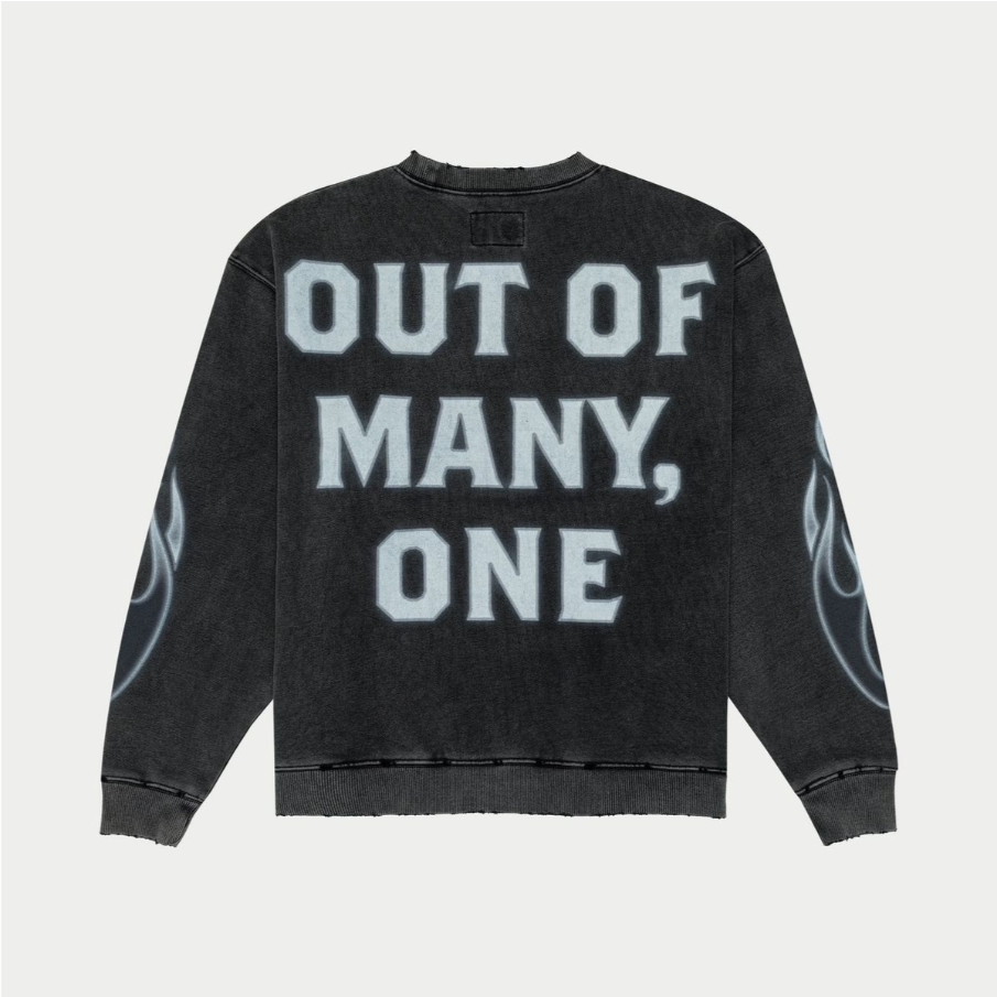 This Sweatshirt is crafted from 400 GSM mid-weight French terry washed fabric and features a striking art piece topped off with stones around the crown.