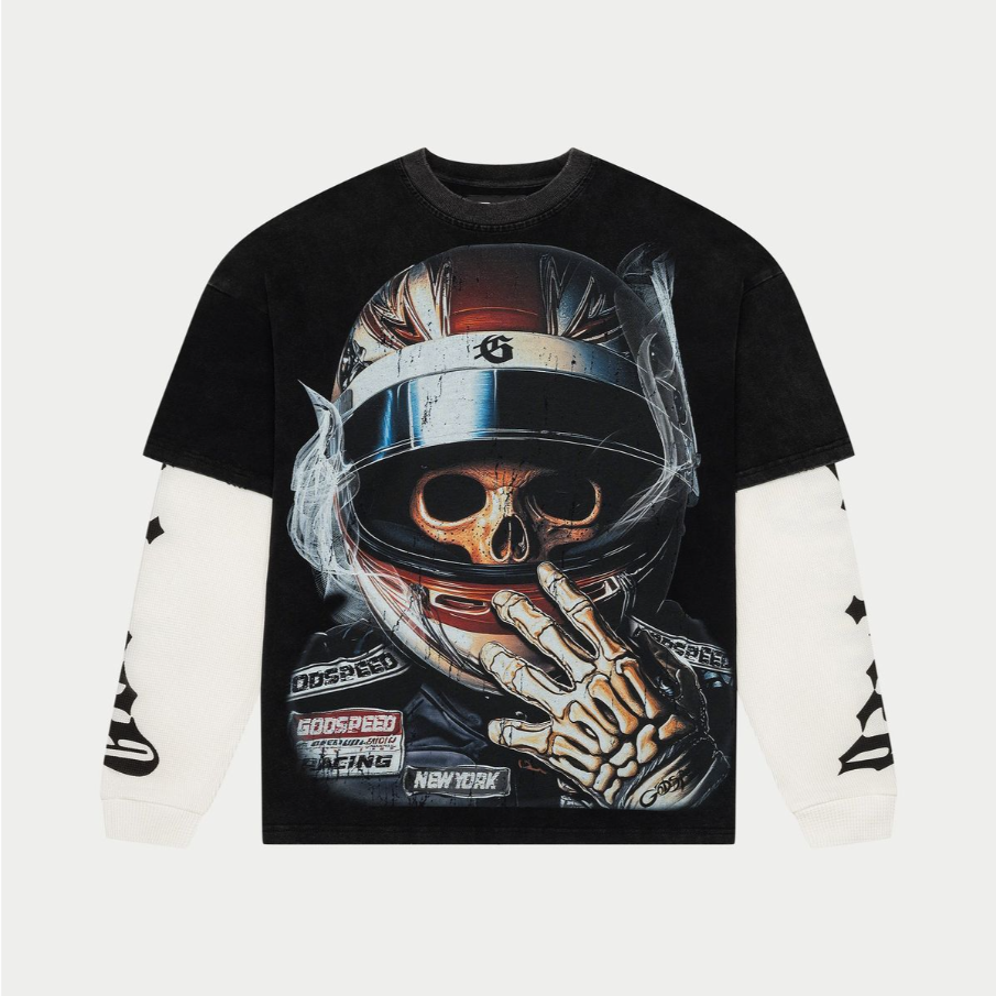 This T-Shirt is crafted from 10oz mid-weight washed fabric, features a striking digital art piece with thermal sleeves. With a limited run of 300 units, it comes with a numbered tag to confirm its authenticity.