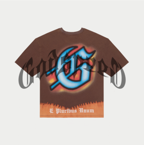 This T-Shirt is crafted from 10oz mid-weight washed fabric and features a striking art piece topped off with stones around the crown.