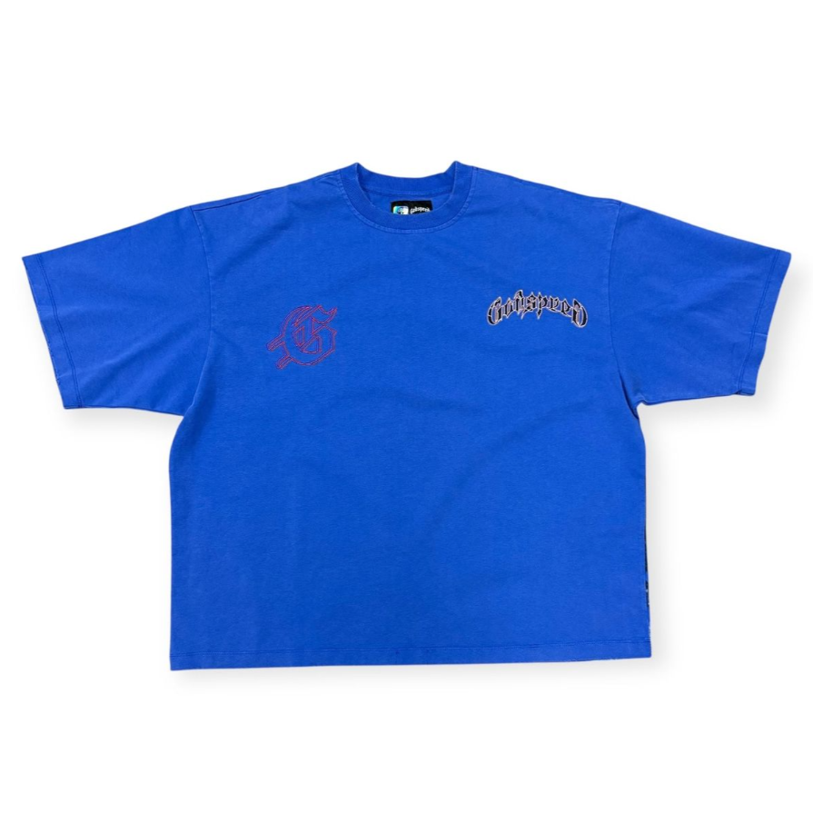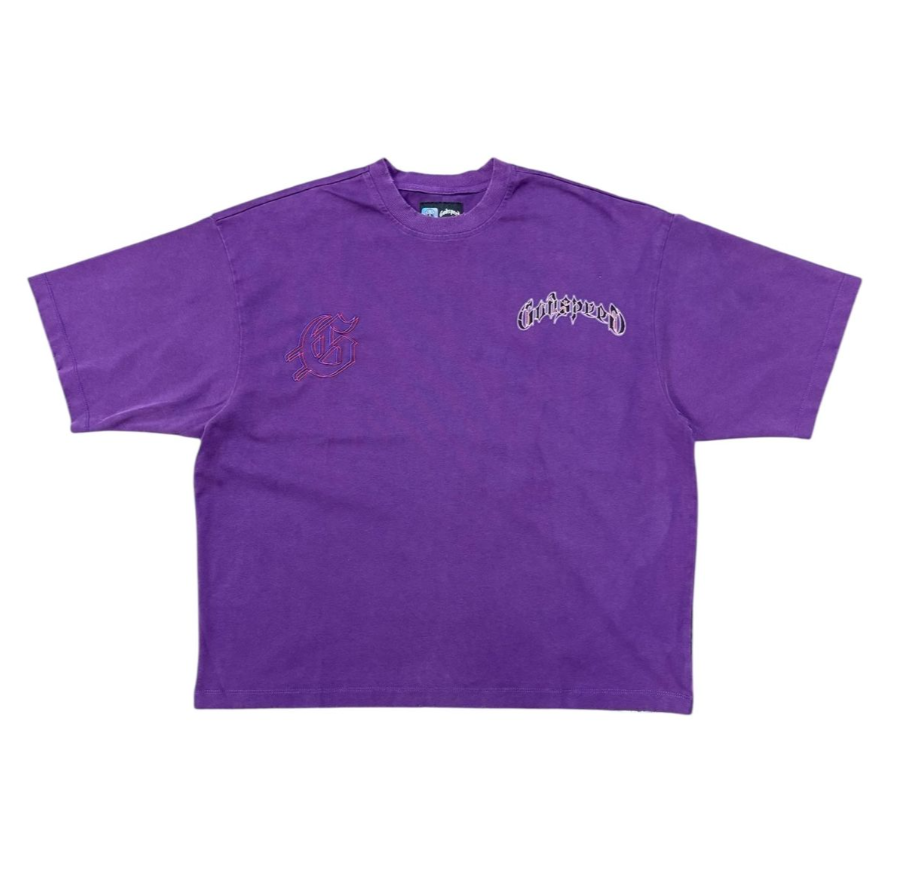 This T-Shirt is crafted from 10oz mid-weight washed fabric and features a striking art piece topped off with stones around the crown.