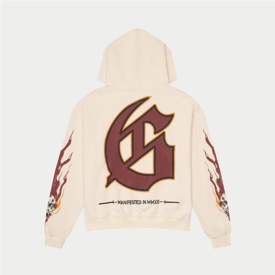 This medium-weight, washed hoodie boasts a distinctive art piece sleeve design with our classic GS logo on the back.