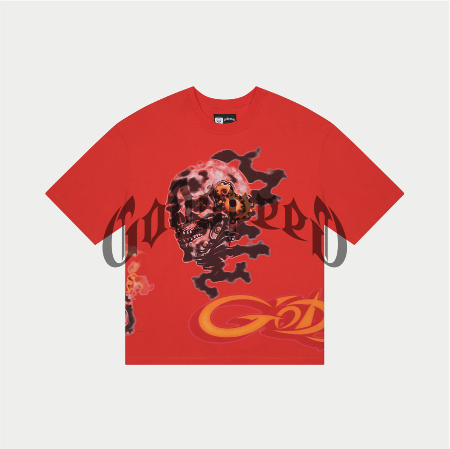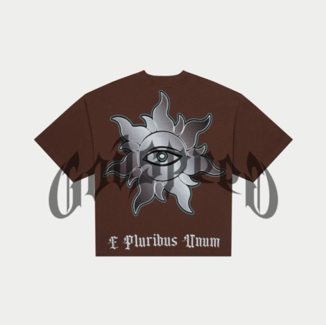 This T-Shirt is crafted from 10oz mid-weight washed fabric and features a striking art piece topped off with stones around the crown.