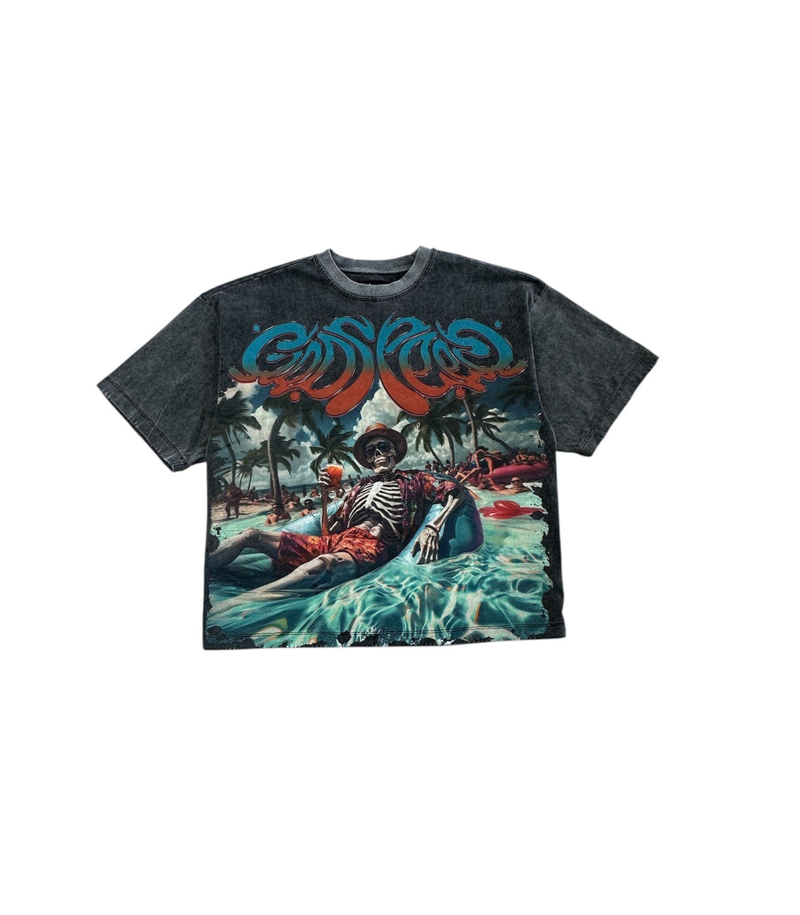 This ain’t your average pool party. The GodSpeed Pool Party Tee in Grey Wash brings summer chaos to life with a wild, disruptive graphic that flips the script on calm waters. Crafted from premium cotton with a distressed grey wash, it delivers that worn-in, vintage vibe with street-certified edge. Cracked print detailing adds character like it’s been through the storm—and still standing loud.