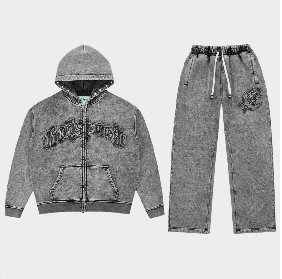 Upgrade your comfort and style with the new Type S sweatsuit. Made from ultra-soft 500 gsm French Terry fabric, this sweatsuit boasts a sleek applique logo adorned with studs for a touch of rockstar flair. It’s a wardrobe must-have for anyone looking to elevate their fashion game.