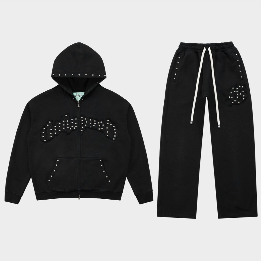Upgrade your comfort and style with the new Type S sweatsuit. Made from ultra-soft 500 gsm French Terry fabric, this sweatsuit boasts a sleek applique logo adorned with studs for a touch of rockstar flair. It’s a wardrobe must-have for anyone looking to elevate their fashion game.