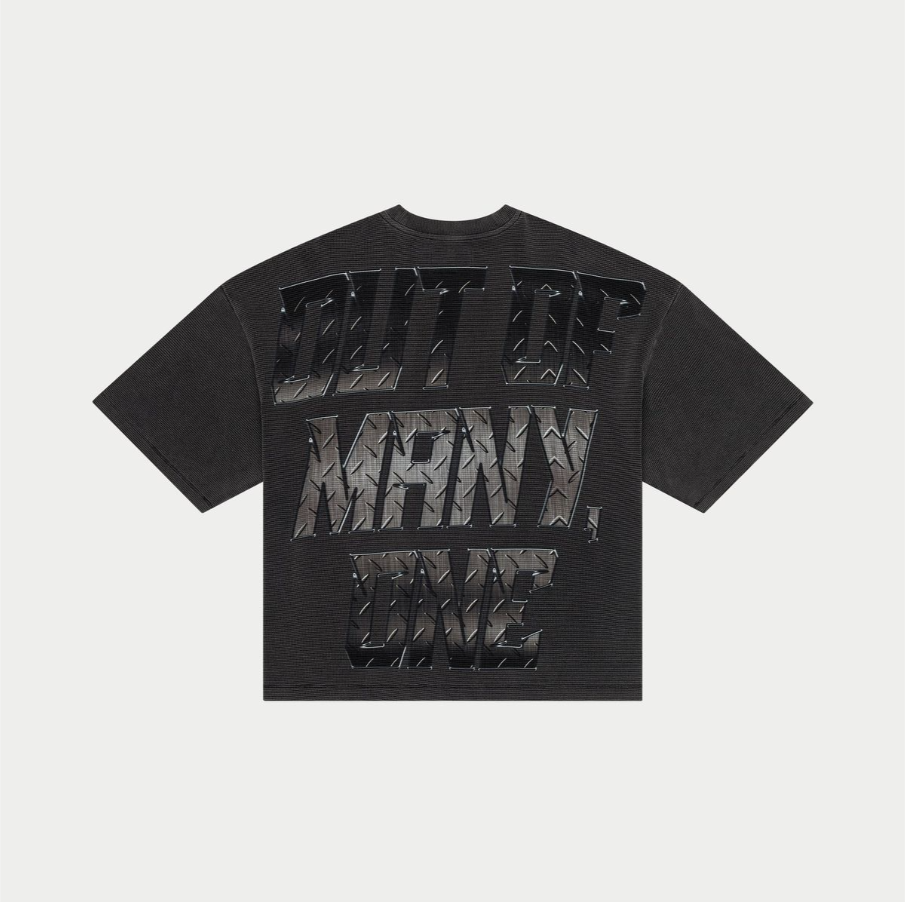 This T-Shirt is crafted from mid-weight washed thermal fabric and features a striking art piece topped off with stones around the crown.