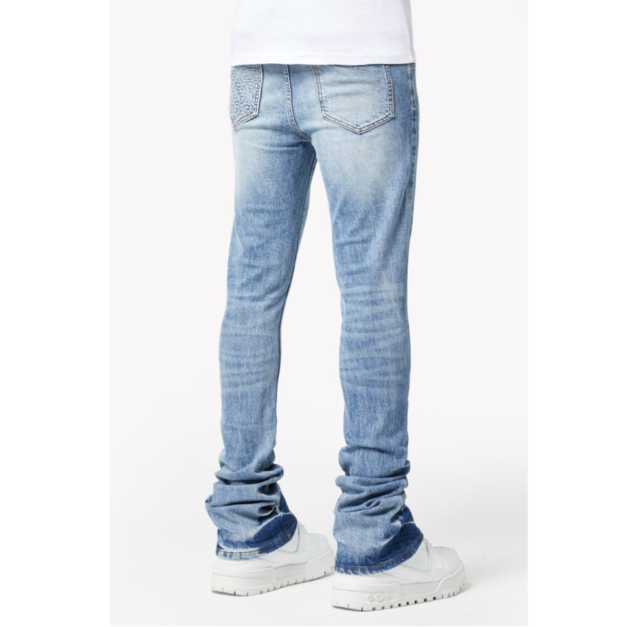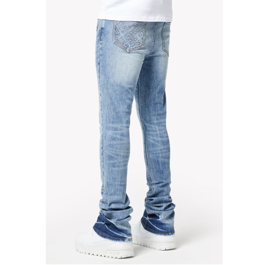 The Pacific Blue Basics Stacked Denim offers a perfect blend of minimalistic design with subtle details. Crafted in a rich Pacific blue wash, these jeans feature a stacked fit at the bottom for a modern, stylish silhouette. Iconic details include a small logo on the right lower leg, the signature pattern embossed on the pockets, and a discreet icon below the left pocket, adding character to an otherwise classic design.