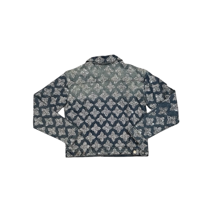 Make a bold statement with the GUAPI Vintage Blue Embellished Denim Jacket. Crafted from durable washed blue denim, this standout piece features an all-over crystal embellishment pattern that adds elevated shine and luxury appeal. Finished with vintage-inspired metallic buttons and dual chest pockets, it delivers a perfect balance of rugged structure and high-end detailing.