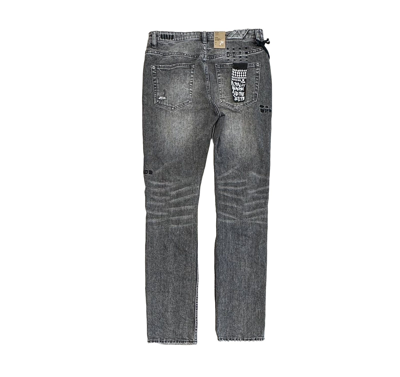 The washed grey tone is treated with a subtle vintage fade and light distressing at the knees and thighs, giving them a worn-in, authentic character. Finished with Ksubi’s iconic box cross embroidery, branded hardware, and the signature 4×4 back detail, these jeans are built for those who know denim — and know how to style it.