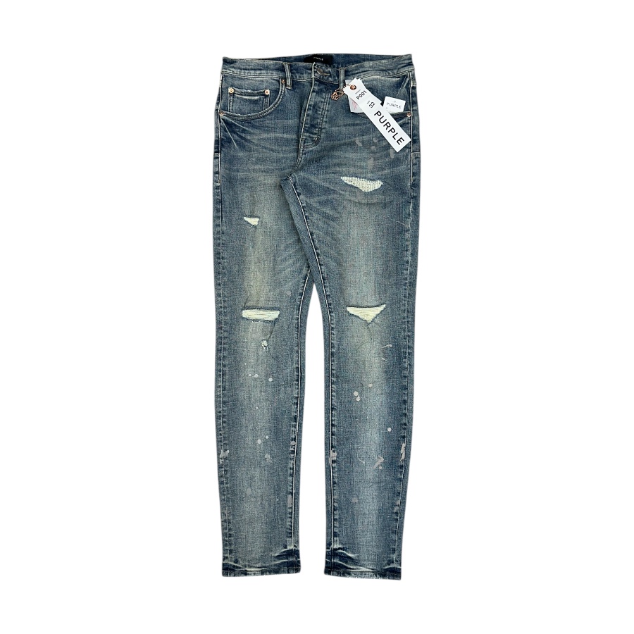 PURPLE BRAND Worn Indigo Slashed Paint Jeans