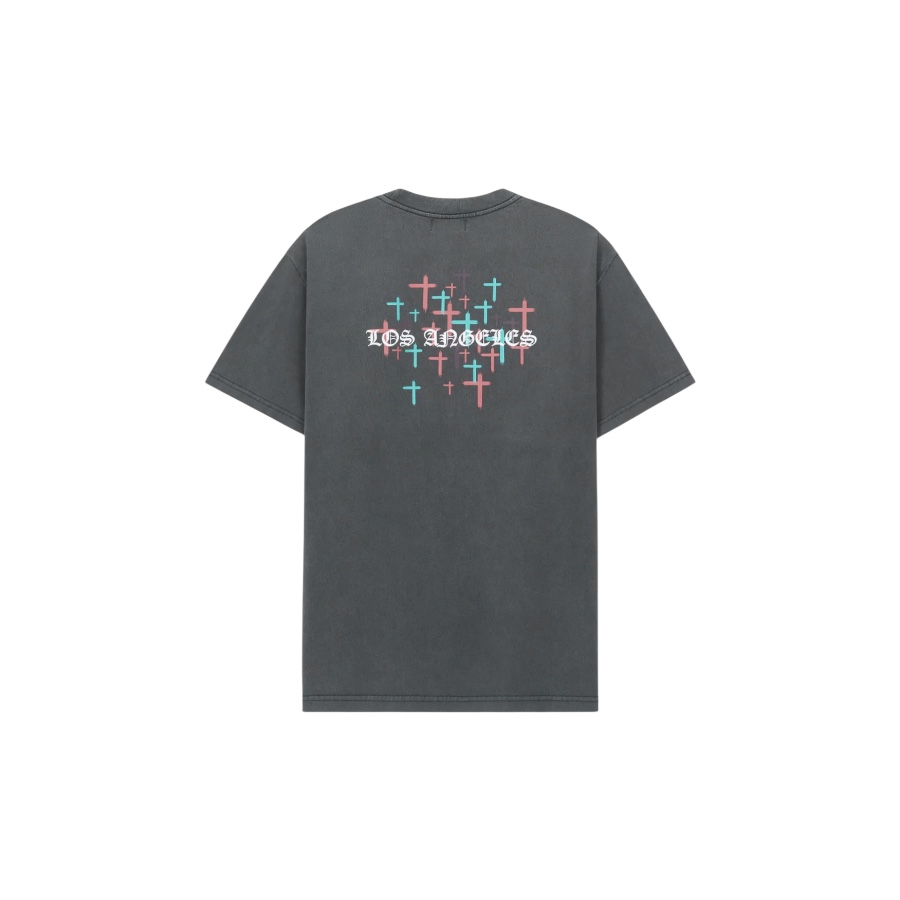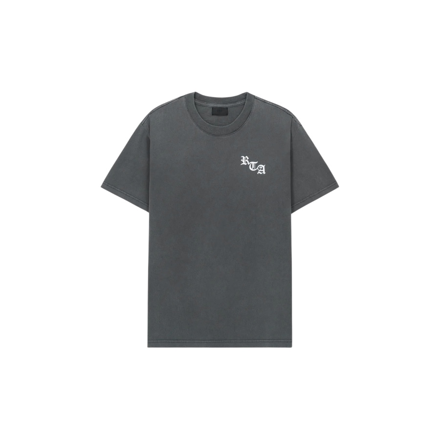 The Colin Oversized Short Sleeve Tee in Vintage Black Old English LA is an oversized, crew neck tee made from 100% Cotton featuring an Old English RtA logo on the chest and Los Angeles cross motif on the back.